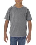 4.5 oz., 100% Ring Spun Cotton; Graphite Heather and Safety Green are 50% cotton, 50% polyester; Heather Irish Green and Heather Royal are 35% cotton, 65% polyester; RS Sport Grey is 90% cotton, 10% polyester; High-stitch density for smoother printing surface; Taped neck and shoulders; Tear away label; Double-needle sleeve and bottom hem; Seamless 3/4" collar; Only size 2T sideseamed; CPSIA Tracking Label Compliant; Gildan's manufacturing process utilizes 45% renewable energy; Gildan’s Community Investment Program supports education, the environment, humanitarian aid and active living in the communities we do business in;